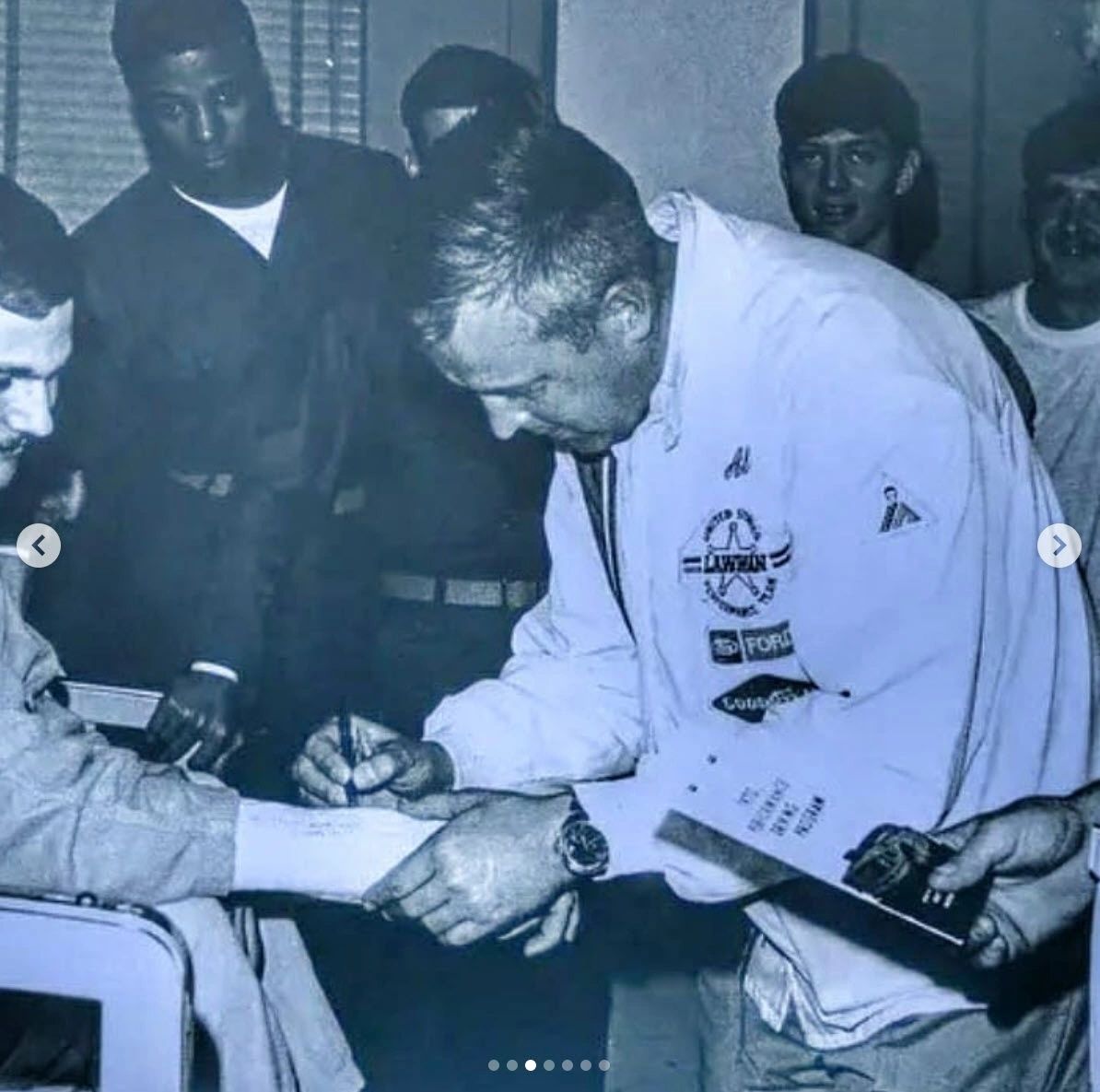 The helmet was painted in the scheme of the car and has a Buco sticker on the back as they were one of the original sponsors as mentioned in the paperwork we have.