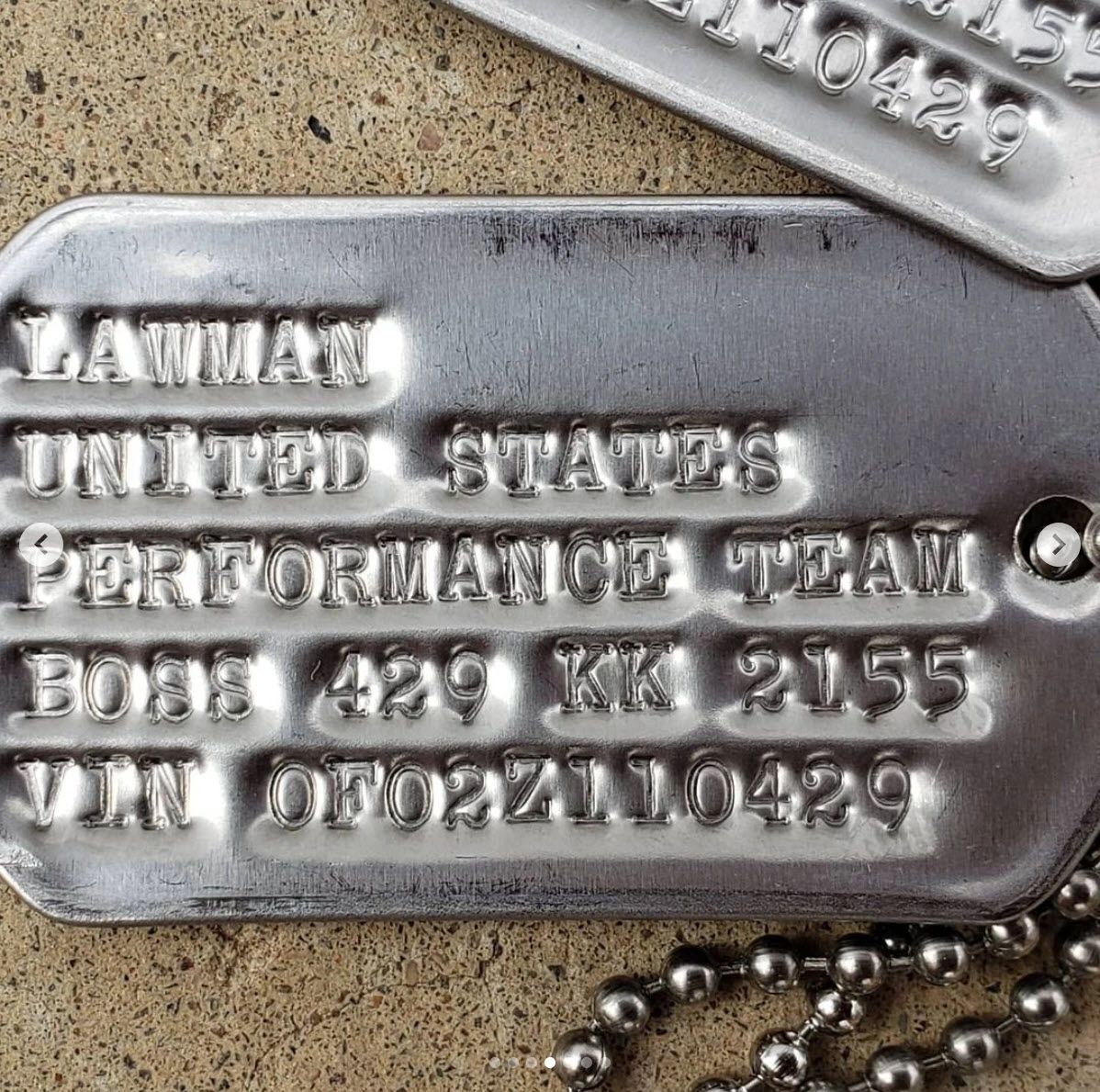 For the dog tags I was lucky enough to connect with Mark Milchak and Derek Hall who are both DoD contractors. Derek has original NOS dog tag blanks that were used in 1970 and the actual machine that was used to punch these out as well, so we have as close to original as possible. The thought here being that the Lawman did a tour of service during the early part of 1970 in Southeast Asia and the tag identifies the car and our respect to those who served. In a way the Lawman served as well.