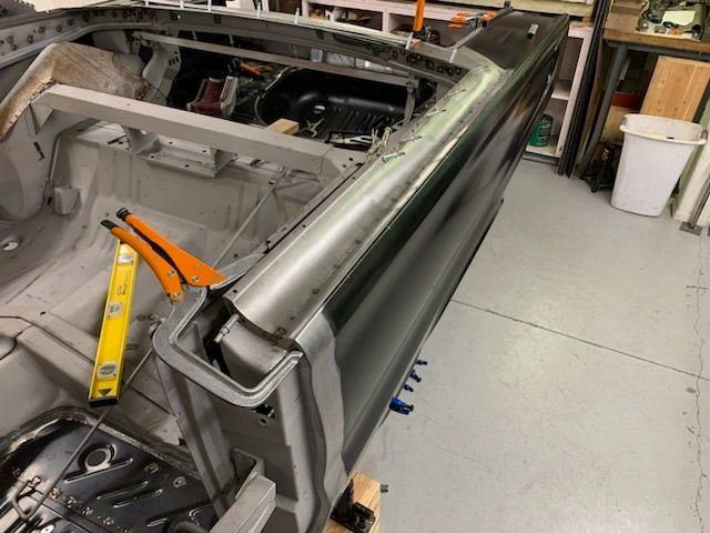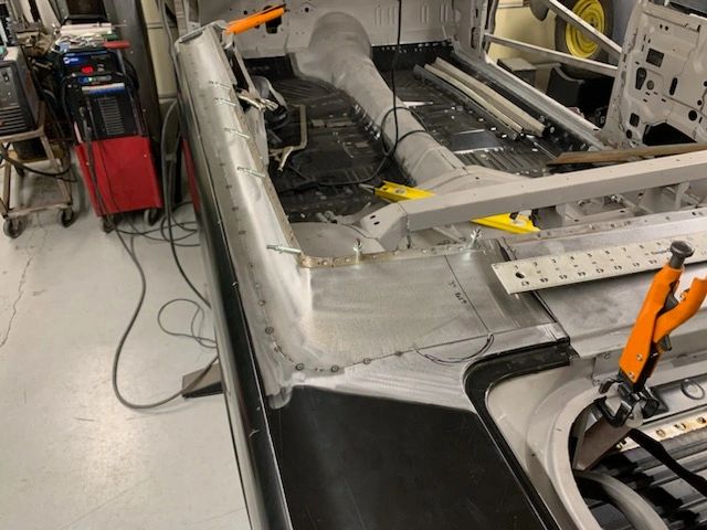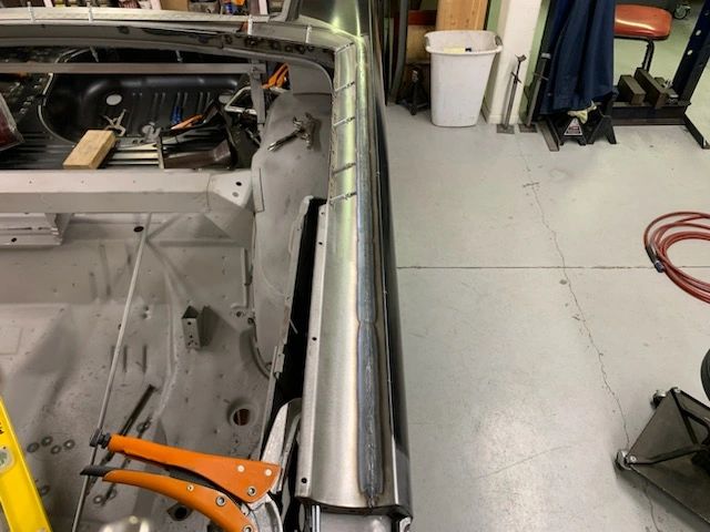 More photos here showing the work involved in welding and fabricating the back section of the trunk area and quarter panels and surrounding supporting pieces and braces.  Although its nice that many of the parts are reproduced today – none fit out of the box and need to be modified to fit and drop in to place.  The goal is to have the gaps and surfaces as factory or better than factory original when completed.