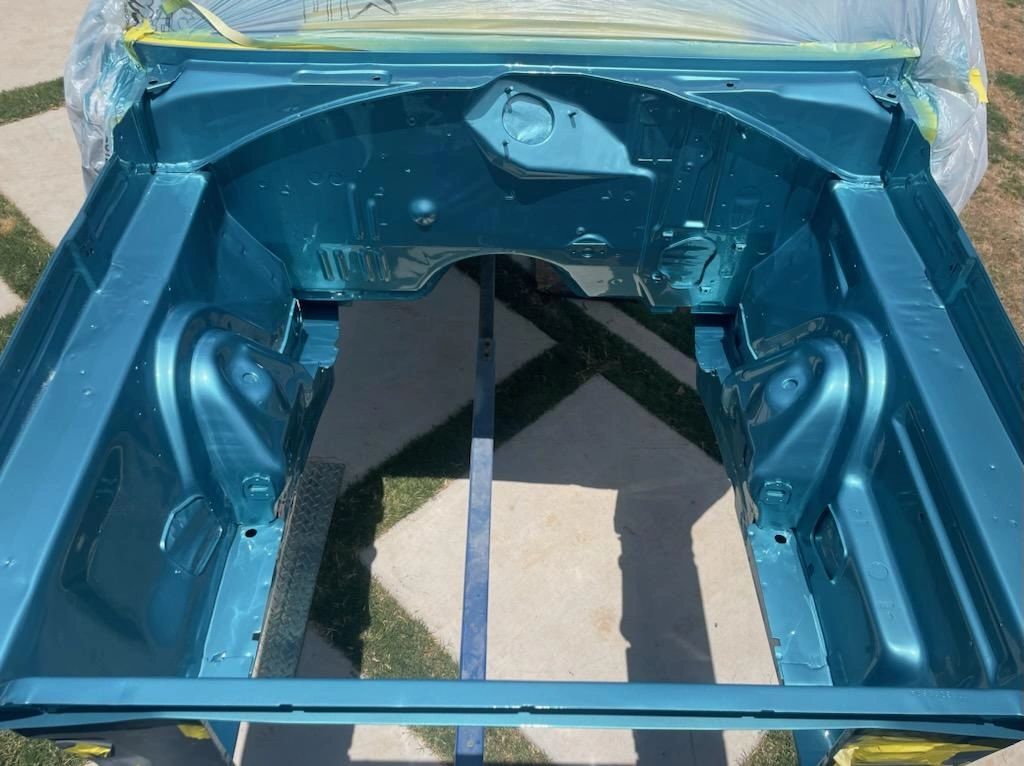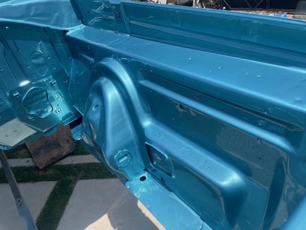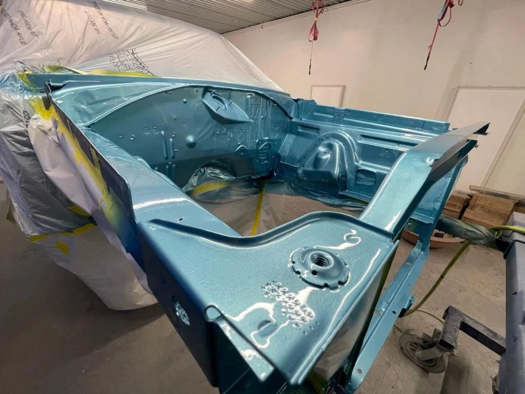 The engine bay now with a splash of our custom Tommy Boy color looks amazing. Its been a long road but seeing the color finally on the car brings it a whole new level but once the panels are installed and the engine and drivetrain are in the car will be really special.