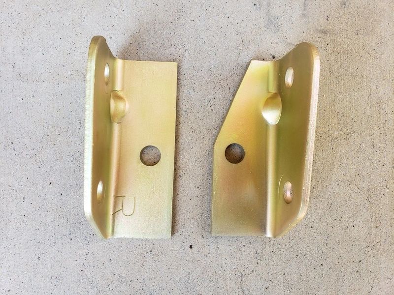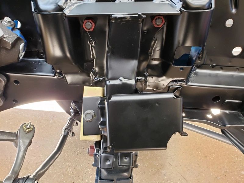 The restored engine to frame brackets that show how a portion of these brackets were originally zinc dichromate from the factory.