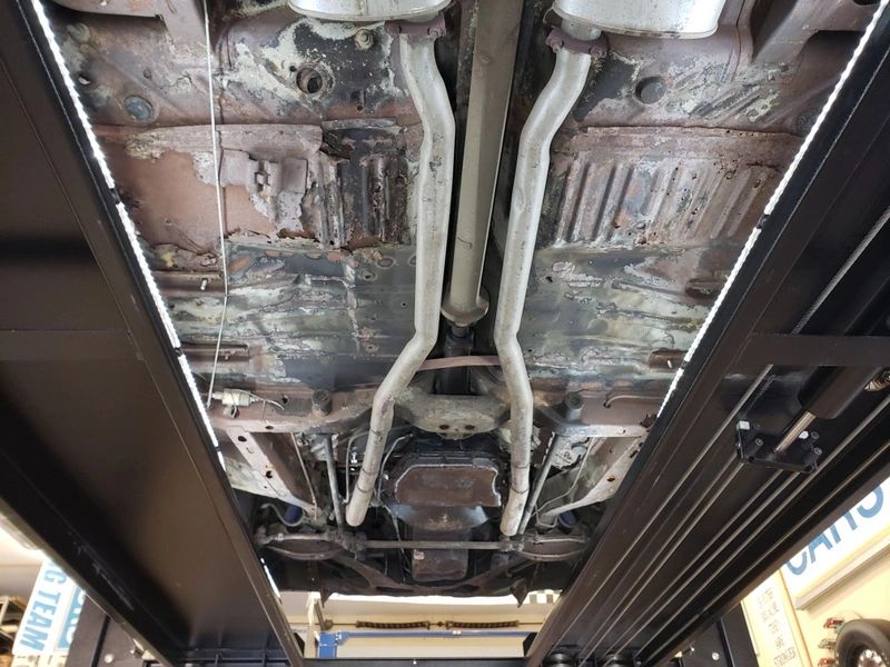 Getting the car finally up on the lift we get to see the true condition of the car…and although its survived all these years, and held up and is still drivable, it will need alot of TLC to get it back to where we want it. Major rust issues will need to be addressed and correctly repaired. You can still various spots where the color used for the movie still shines thru.