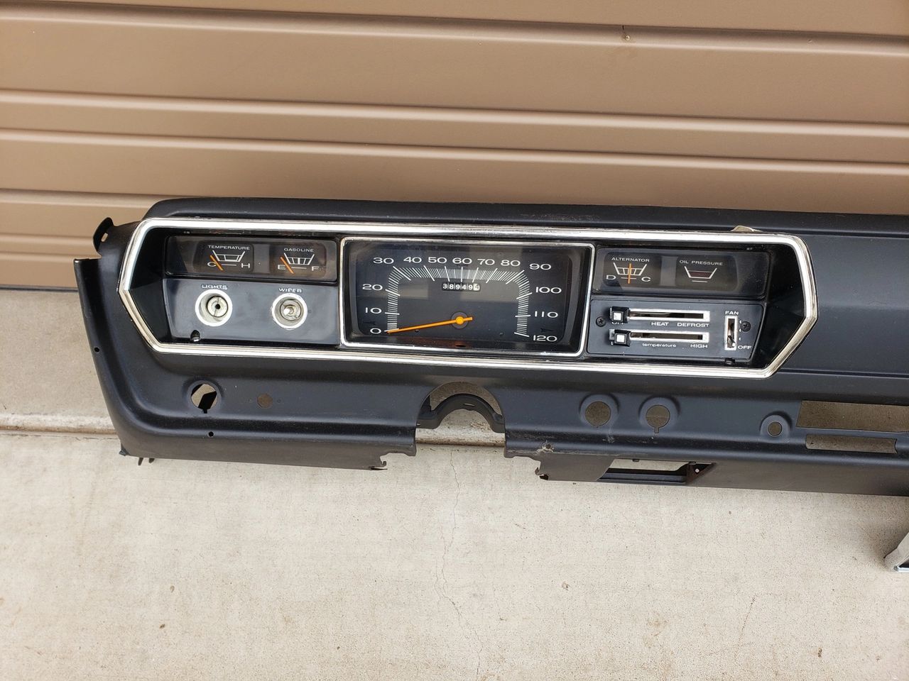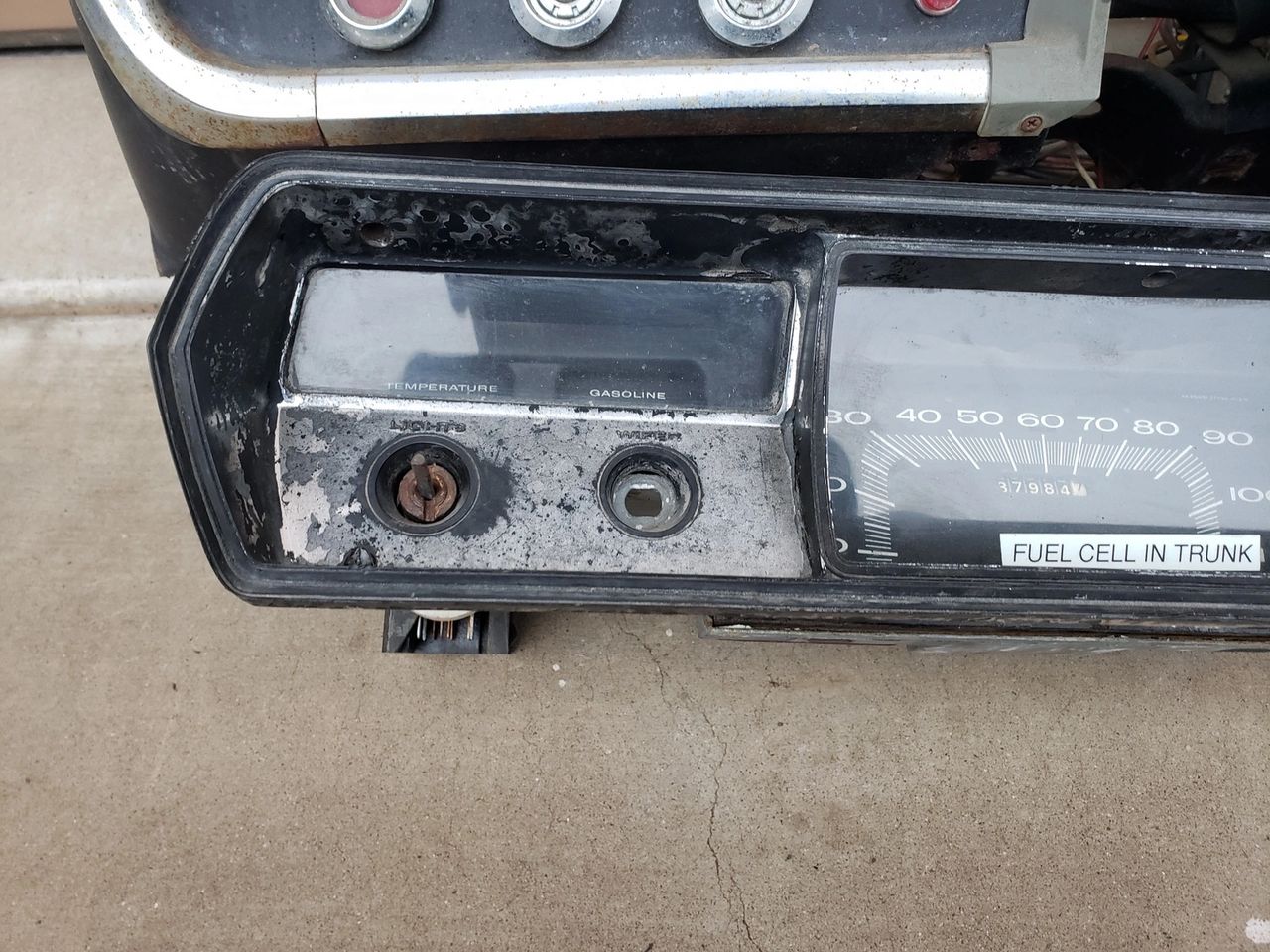 Some photos showing the origjnal gauge cluster that came with the car.  The speedometer is non functional and the other gauges possibly not as well.  The gauge cluster bezel is also cracked and no useable anymore as are the lenses.  The glovebox as well is in poor condition.