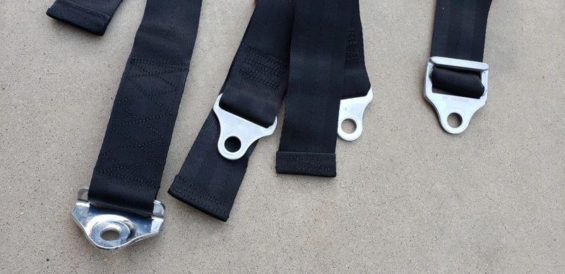 Original seat belts restored with all the hardware either re-plated or polished. Replaced all the webbing and fabric to match exactly as originals and remove the original “Bob’s Drag Chutes” patch and clean and reinstall. Good as new now.